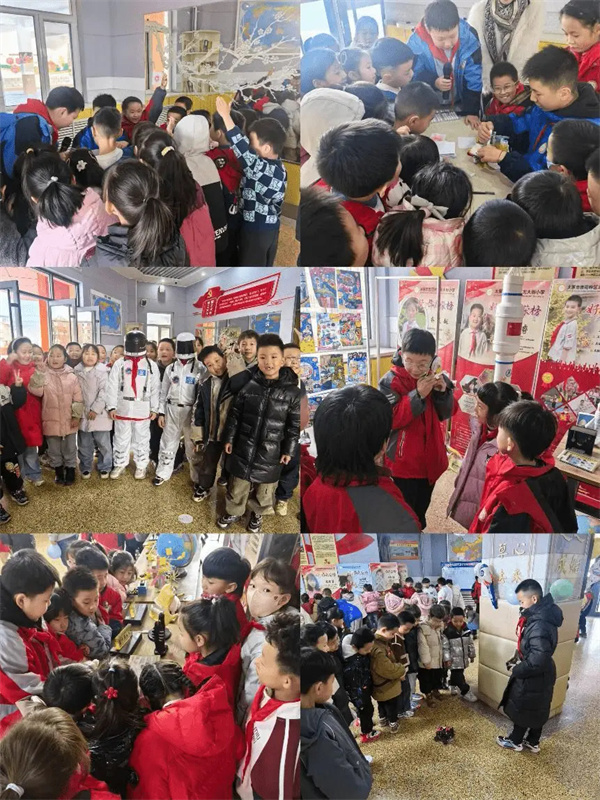 一楼的科学展仿佛是一个浓缩的科技小宇宙,处 处洋溢着无限惊喜。这里陈列着琳琅满目的科技展品, 有展现物理原理的望远镜,通过它能遥望浩瀚星空, 探索宇宙奥秘;有体现地理学科知识的地动仪,古老 的智慧结晶仿佛在诉说着历史与科学的故事;还有彰 显手工魅力的飞机模型,精致的做工令人赞叹。同学 们在其间穿梭,或驻足凝视,或热烈讨论,在亲身体 验与互动中,真切地感受到科学的神奇与趣味。