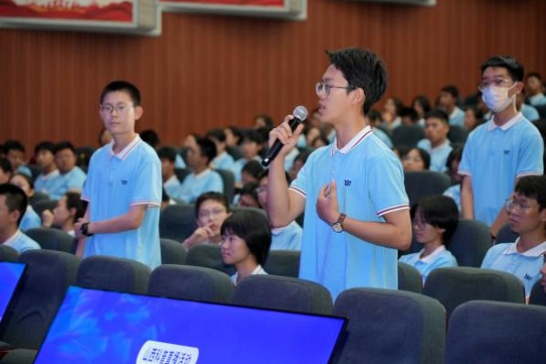 在互动问答环节,同学们就疫苗研发、城市生态、人工智能伦理等提问。一个个充满思辨精神的问题,展现了新时代中学生广阔的视野和深入的思考。三位专家给予了严谨而又富于启发性的解答,让在场学生获益匪浅。