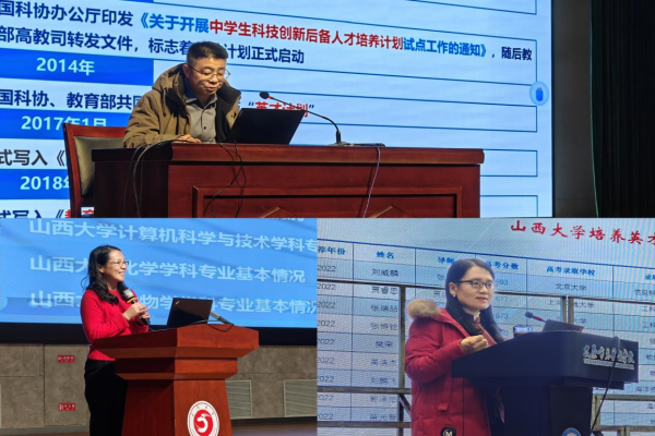 宣讲会上,山西大学宣讲团详细解读了“中学生英才计划”的实施背景、导师团队、培养模式及评价机制。来自数学、物理、化学、生物、计算机等不同学科的专家分别作了专题科普报告,包括《强基创新、梦想远航—数学再认识》《人工智能发展现状与应用》《化学之美》《“化”说核酸检测》等,生动系统地介绍了各学科导师团队、科研资源与培养体系,使参与师生对计划有了更全面深入的认识。